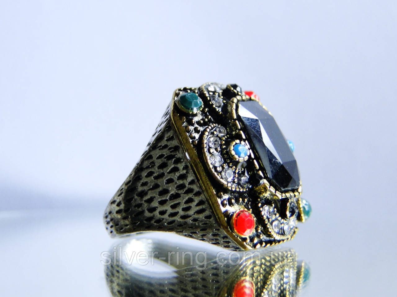 Перстень виконаний з мельхіору з позолотою.